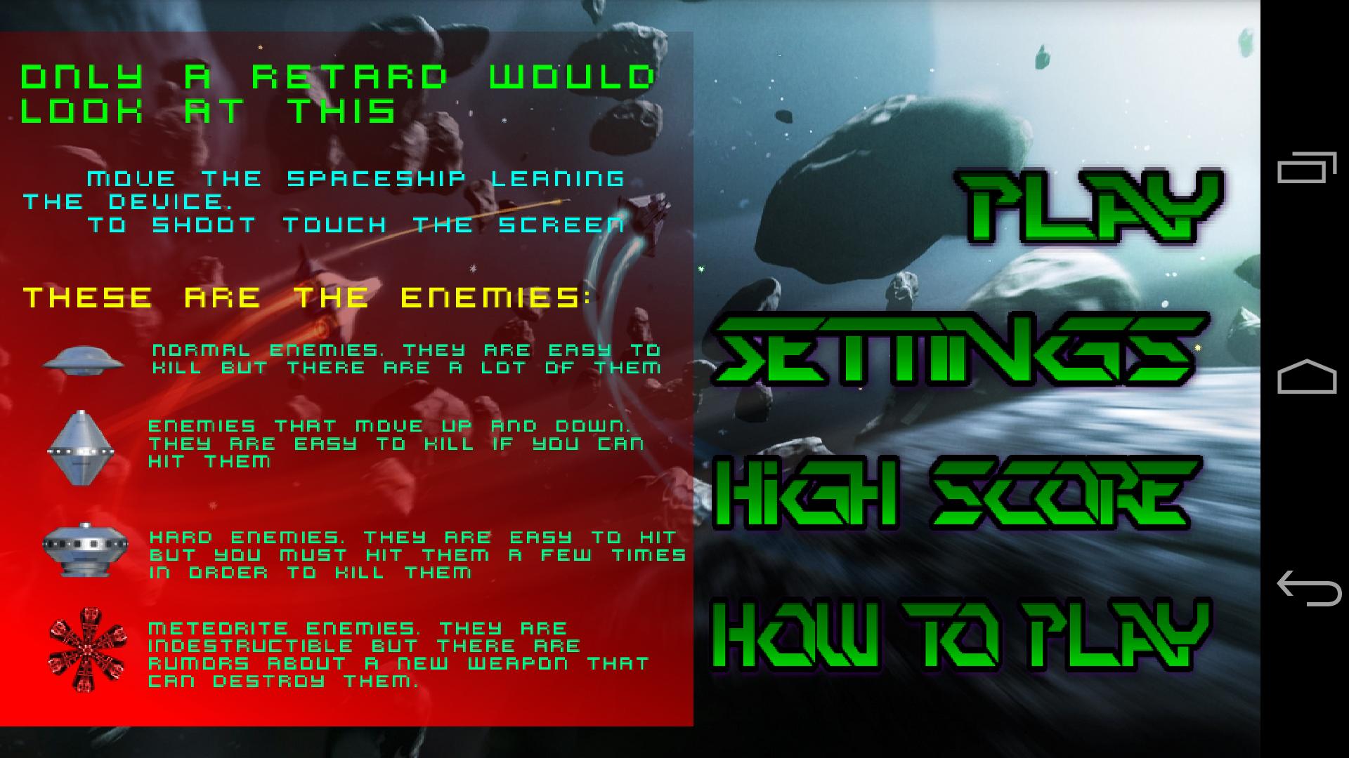 宇宙の旅を始めて、敵の宇宙船を破壊しなければならない敵の宇宙船を通り抜けてください。旅の間、あなたはより良いスコアを得るのに役立つパワーアップを見つけるでしょう。